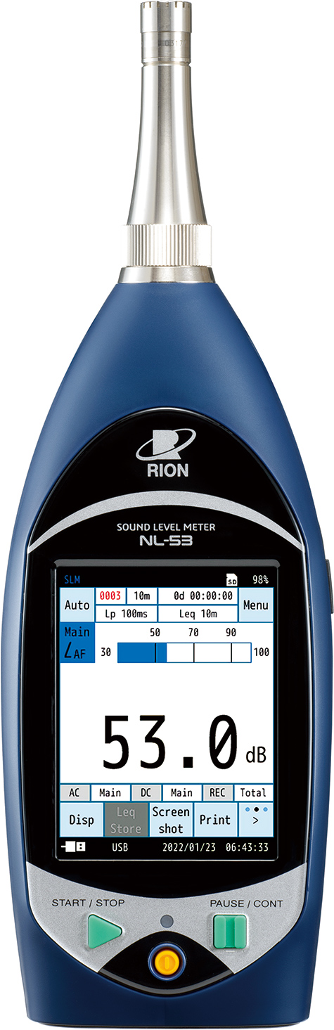 The NL-53 Sound Level Meter is designed with a full colour LCD screen with touch panel for ease of use. It is water resistant, can use rechargeable batteries and are capable of recording sound data for up to 1000 hours.