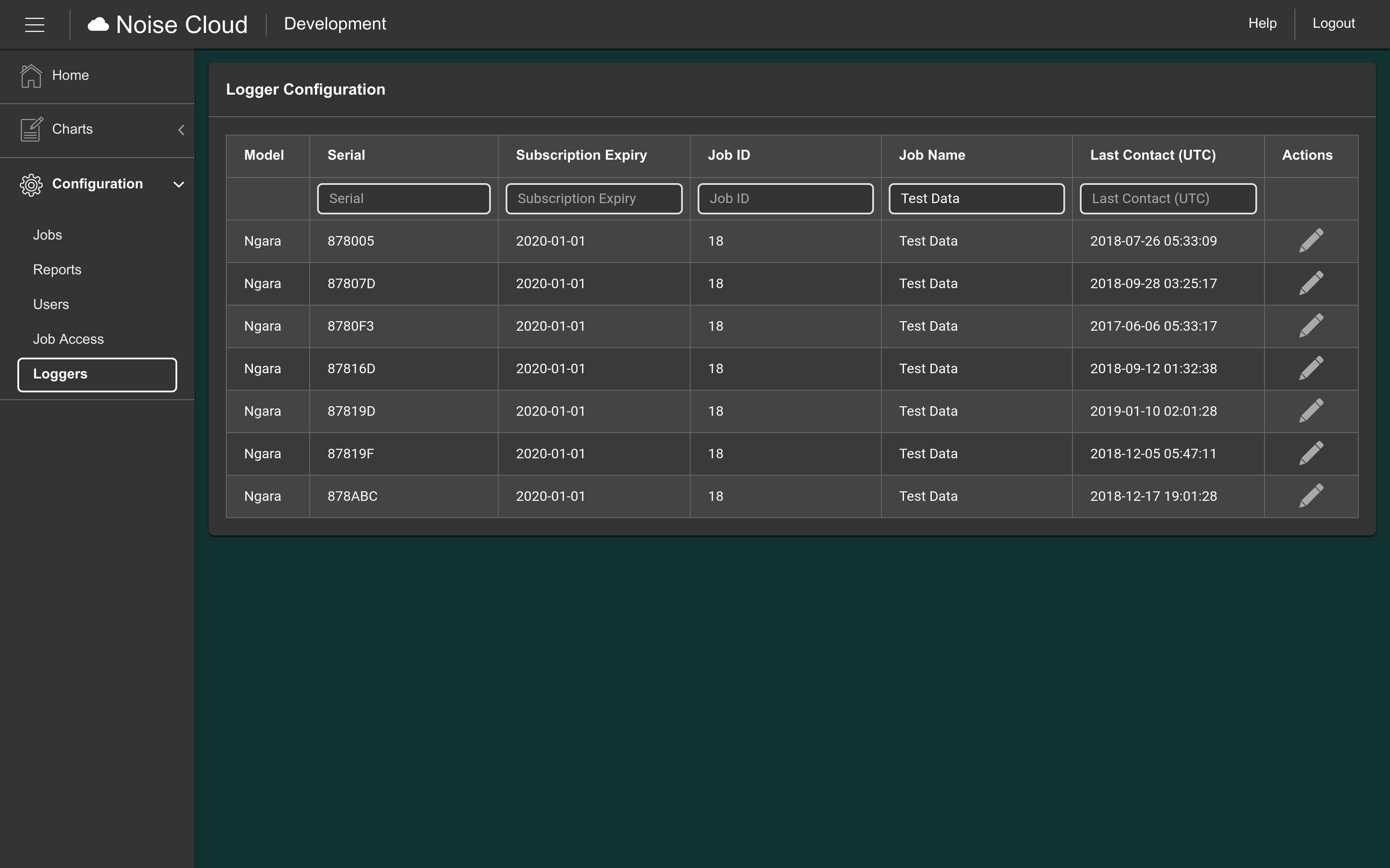 Loggers are paired to a Noise Cloud™ job via a job key which is generated using the web-interface and ensures each dataset is sent securly to the desired location.